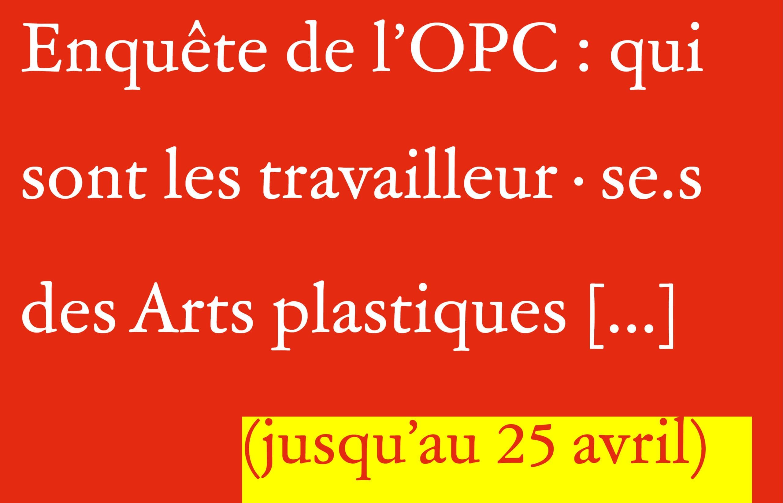 L’Observatoire des politiques culturelles (OPC), service de recherche du Ministère de la Fédération Wallonie-Bruxelles (FW-B), réalise actuellement « le portrait socioéconomique des travailleur·se·s des arts plastiques, visuels, numériques, de l’architecture, de l’espace, des arts appliqués, du design et de la mode en FW-B ».